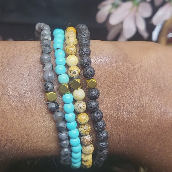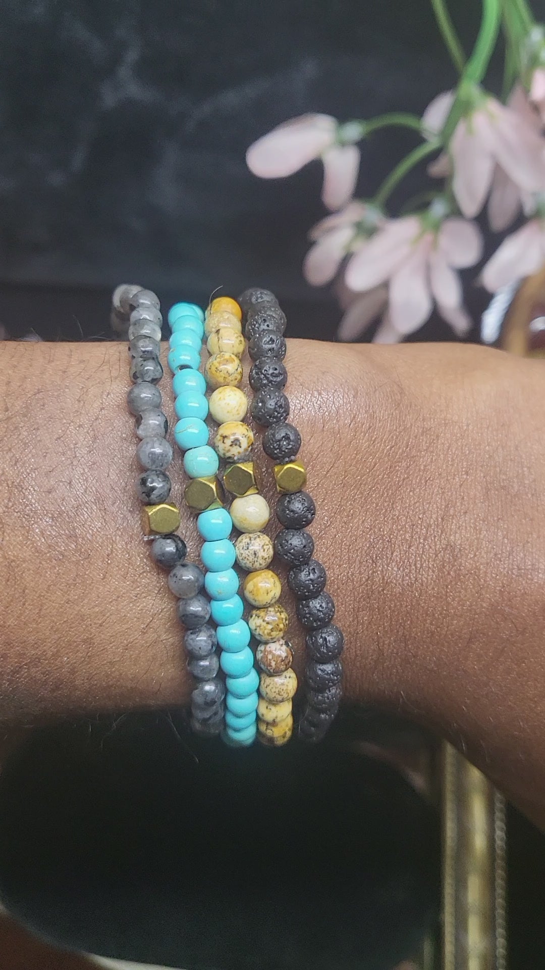1 Pc Assorted 4mm Natural Stone Stretch Bracelet - Healing Jewelry, Gift for Her, Turquoise, Lava, Jasper, Labradorite, Natural Gemstone