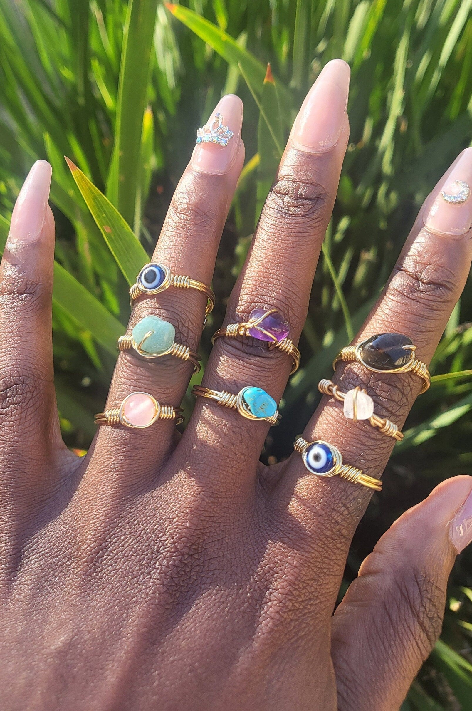 Elevate your accessory collection with our exquisite Assorted Adjustable Wire Wrapped Gemstone Rings. Each ring is a unique piece of art, meticulously handcrafted with high-quality materials to ensure both elegance and durability. The adjustable design ensures a perfect fit for just about any adult finger size, making these rings an ideal gift for yourself or a loved one.