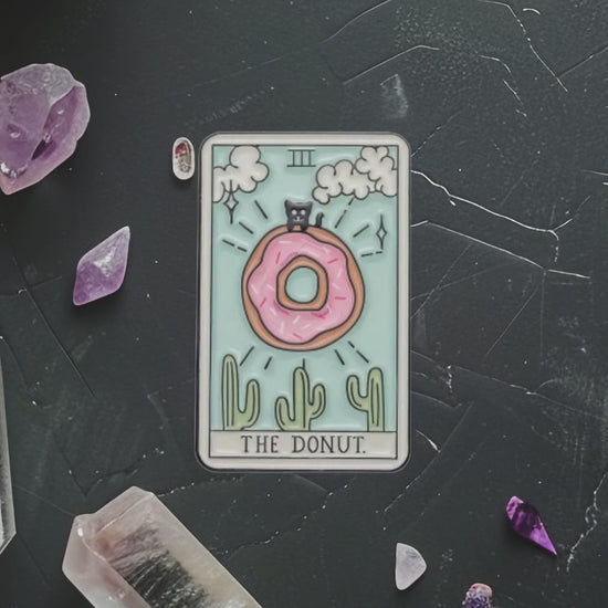 Unleash your inner mystic with our Assorted Tarot Pins, featuring a playful twist on classic tarot cards. Each pin in this quirky collection represents a unique card: The Donut, The Coffee, The Guac, The Margarita, The Beer, The Wine, and The Pizza. Adorned with cool celestial images, these pins bring together the mystical and the mundane in a fun and stylish way.