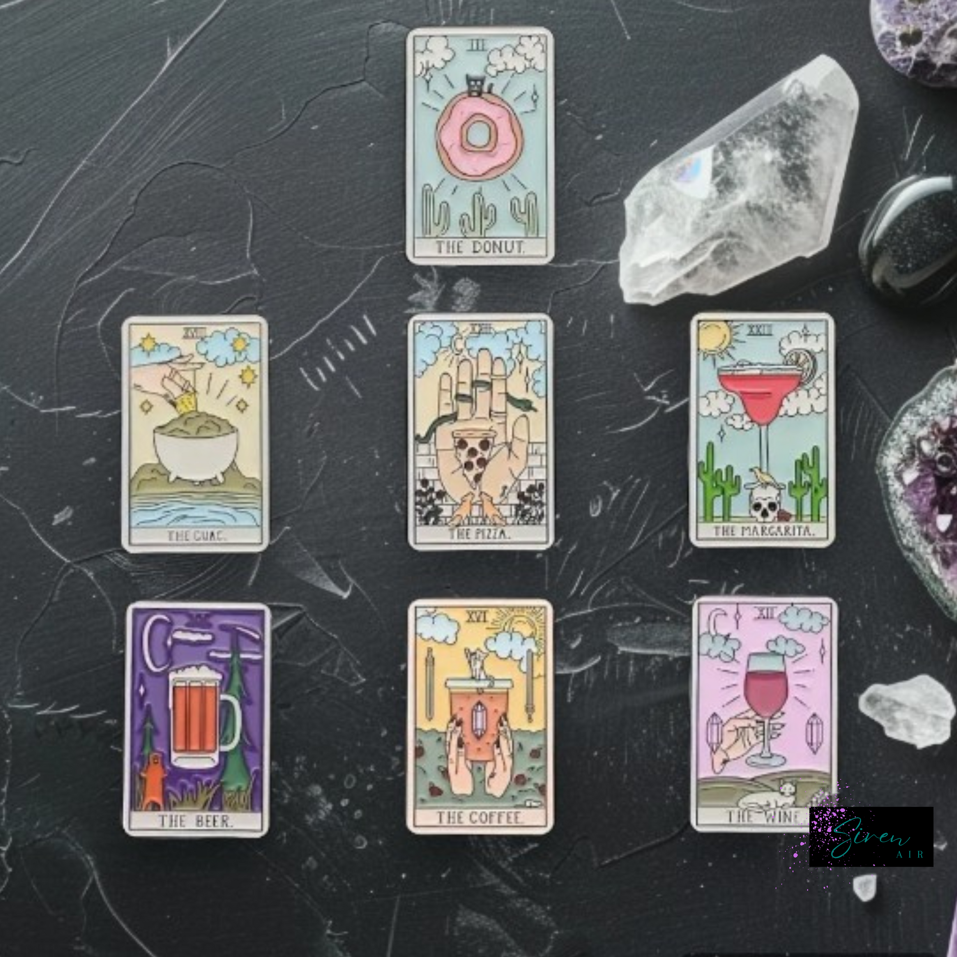 1 Pc Assorted Food Tarot Pins, Quirky Tarot Cards, Donut, Coffee, Guac, Margarita, Beer, Wine, Pizza, Celestial Designs, Unique Gift Ideas
