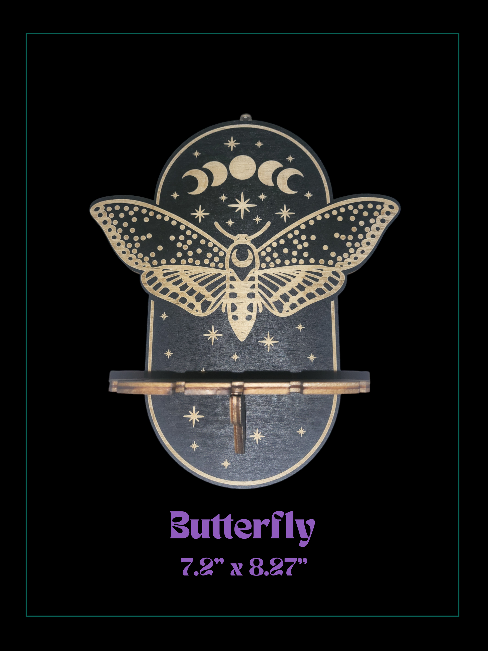 1 Pc Assorted Small Wooden Altar, Stand For Pendulums, Gemstones, Crystals, Hamsa, Celestial Butterfly, Unique Spiritual Decor, Handmade