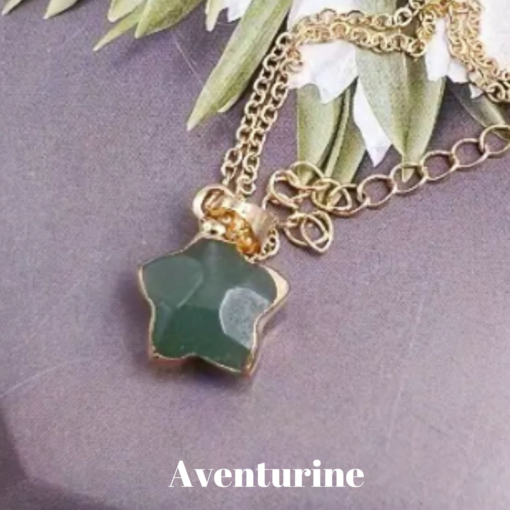 1 Pc Assorted Star Gemstone Gold Pendant Necklace - Healing Jewelry, Gift for Her, Turquoise, Green Aventurine, Amethyst, Natural Stone