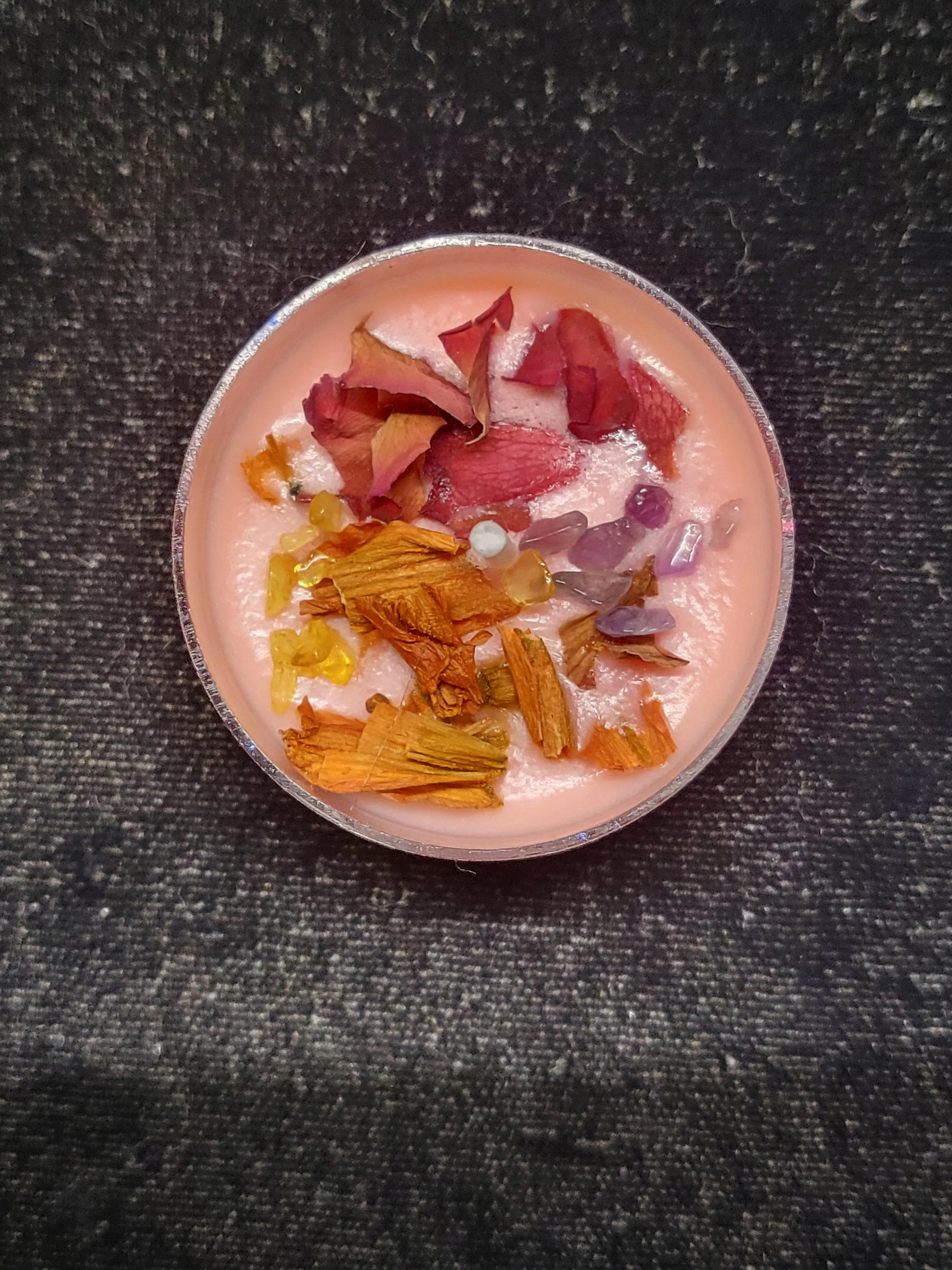 This potent candle is intended to strengthen your intention, with each element researched by intention type, chosen with love and care, and blessed to bring your desire the next level.