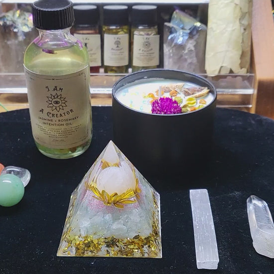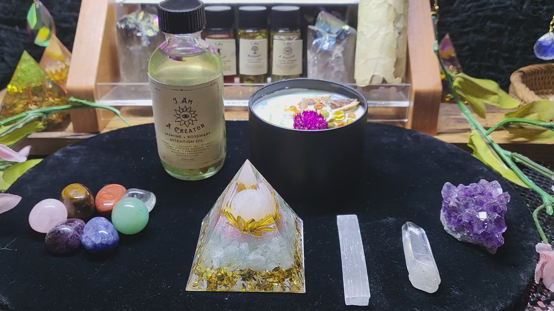 I Am Intention Gift Set - Intention Oil, Intention Candle, White Sage, Abalone Shell, Chakra Gemstones, Orgone Pyramid, Protection, Manifest